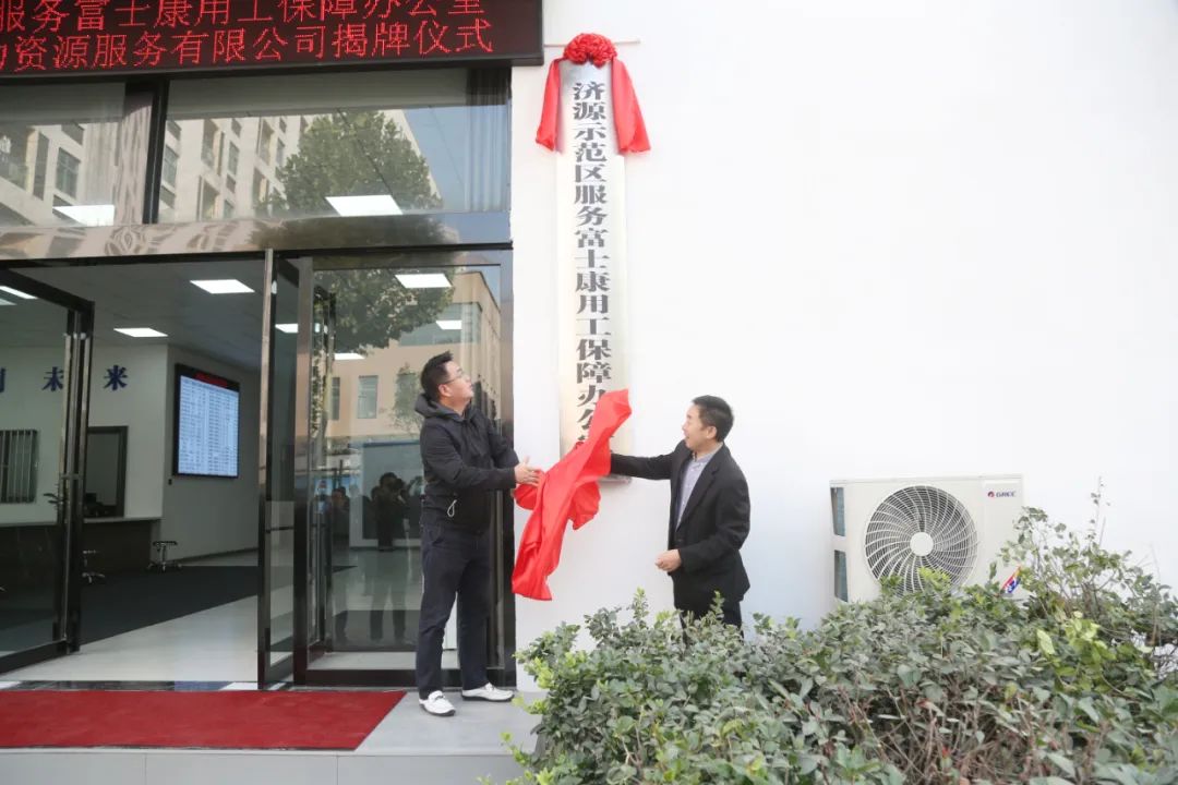 隨后,示范區(qū)管委會黨組成員、副市長趙會生與富聯(lián)科技(濟源)有限公司顏敏琦共同為濟源示范區(qū)服務(wù)富士康用工保障辦公室揭牌!