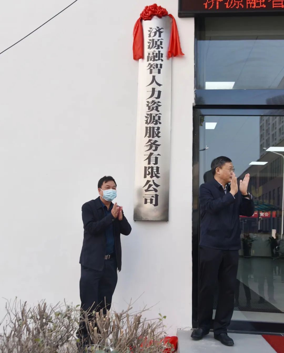 示范區(qū)人社局黨組書記、局長王劍波與濟源投資集團黨委書記、董事長陳明亮共同為濟源融智人力資源服務(wù)有限公司揭牌!