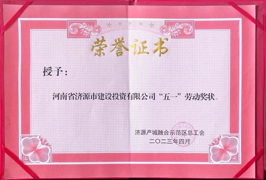 濟(jì)源示范區(qū)‘五一’勞動(dòng)獎(jiǎng)狀