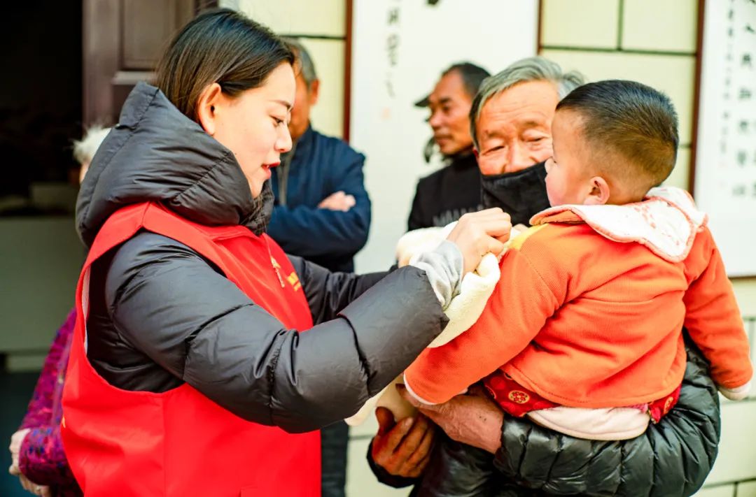 在村委精神文明活動(dòng)室,大家?guī)е蛐禄蚺f但干干凈凈、分類整齊的御寒保暖衣物,現(xiàn)場(chǎng)為孤寡老人、留守兒童送上“溫暖”。在悉心的交流中,耐心為他們挑選合身衣物,貼心為孩子們穿上新裝,鼓勵(lì)孩子們要學(xué)會(huì)堅(jiān)強(qiáng),在逆境面前堅(jiān)定信心,努力學(xué)習(xí)。