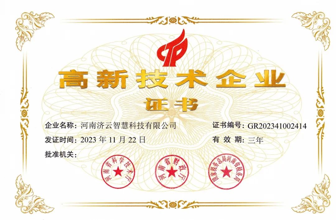 喜報!濟源投資集團所屬濟云智慧榮獲高新技術(shù)企業(yè)證書!